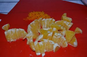 - Утрљајте кору и исецкајте наранџу на комаде.