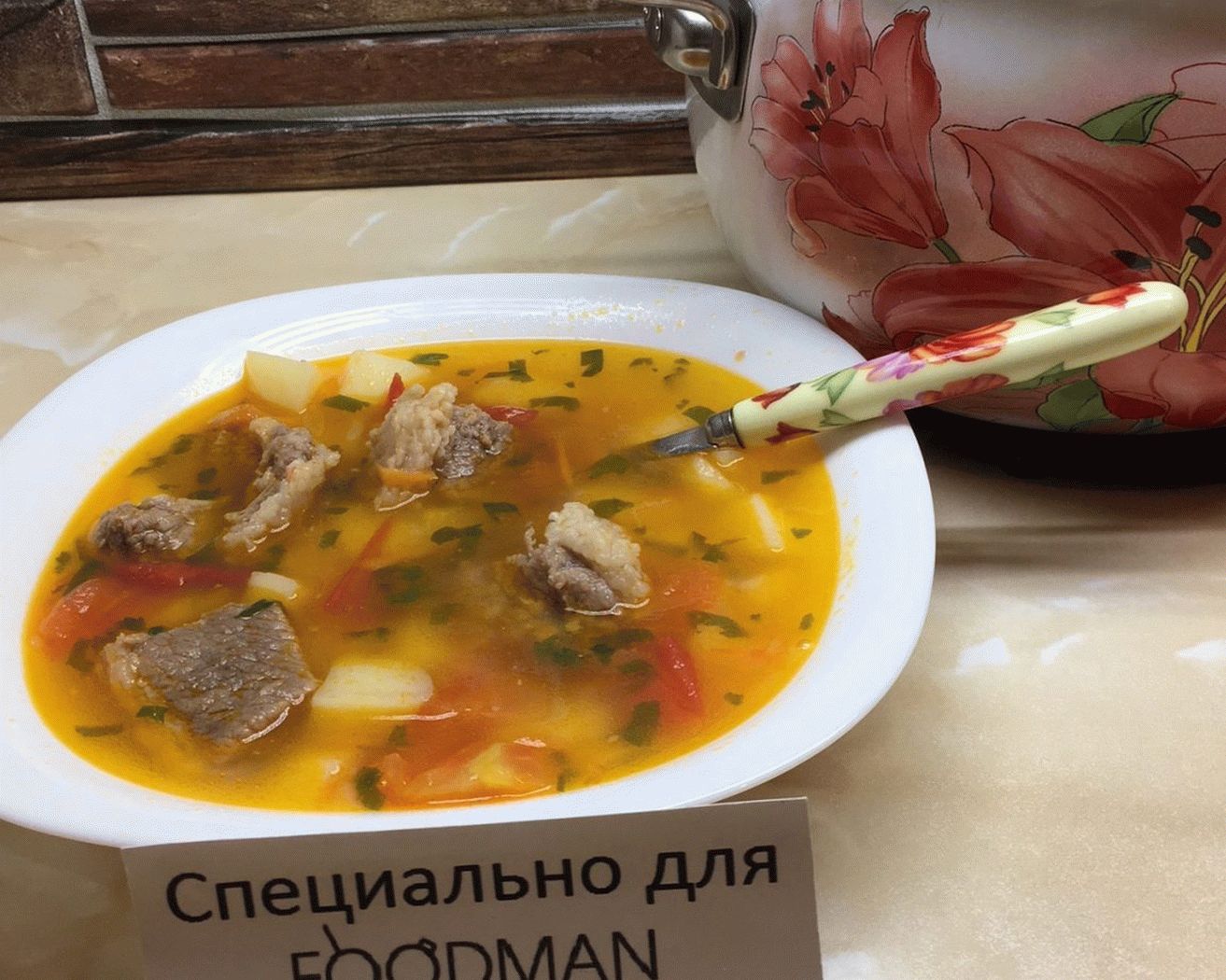 Домаћа укусна домаћа супа од печене говедине од свежег парадајза.