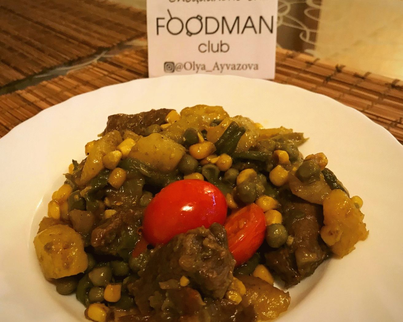 - Затим у таву додајте грашак, кукуруз и пасуљ. Стев 10-12 минута, док не буде спремно.