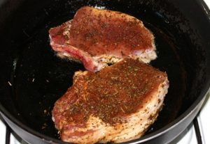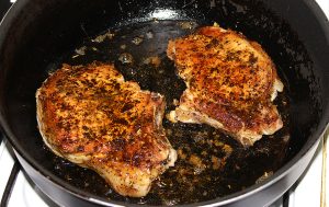 - Ставите месо у шерпу и пржите 4 минута, а затим преокрените и пржите око 3 минута.