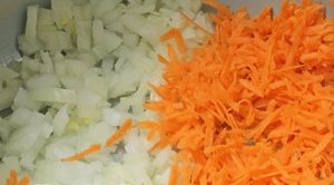 - Сипајте уље у посуду са мултикукаром. Покрените програм пржења (15 мин) и лук прелијте шаргарепом.