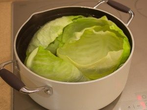 - Умочите парне листове купуса у кипућу воду минута. Извадите их кашиком и охладите.