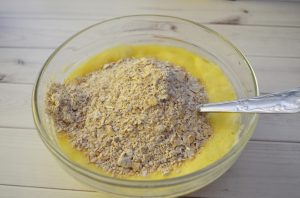 - Овсену кашу мељејте мало, али не до брашна. Додајте у тесто. Додајте прашак за пециво и ванилин.