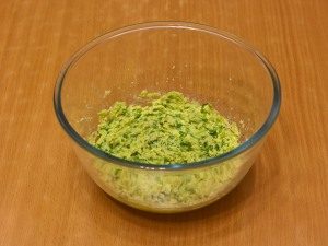- У волуметријској чинији помешајте здробљене жуманце, авокадо и зеље, мало соли, зачините мајонезом, можете кући (на локацији има рецепт).