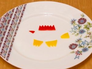 - Изрежите (маказе или нож) црвене паприке Иклиувик: Одсећи крила и реп од жуте боје бибер.