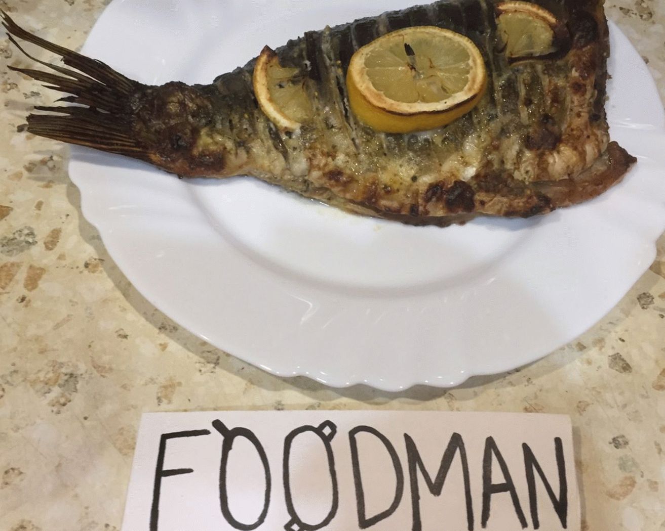 - Премажите шарана са сољу, зачинима за рибу, лимуновим соком и мајонез.