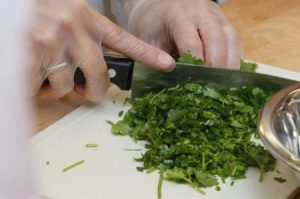 - Ситно насецкати бибер. Кинзу такође ситно исецкати.