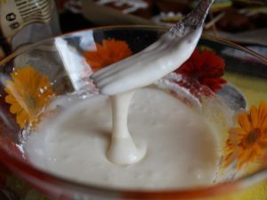 - Јаја умутите са лимуновим соком и шећером у праху.